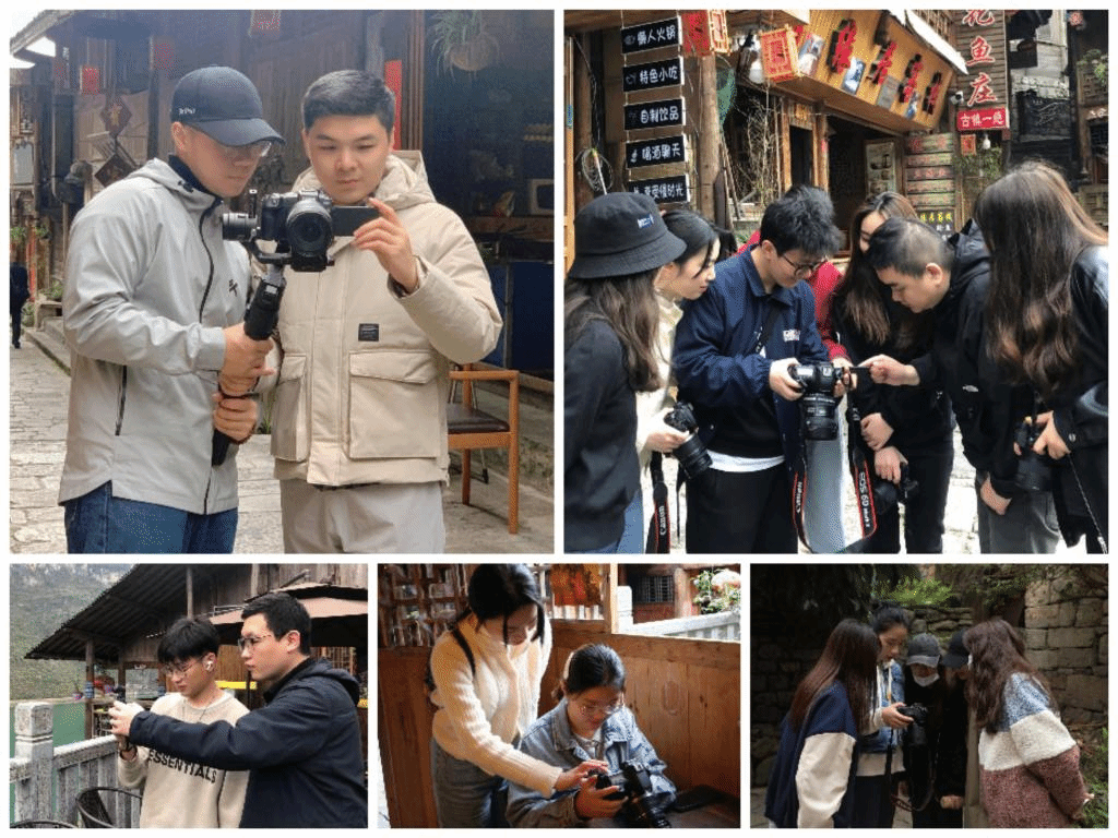 采风期间,同学们以小组为单位,分赴古镇不同地点进行拍摄、考察,并共同交流在采风过程中遇到的艺术理念、色彩基础、拍摄技巧、田野工作等相关问题。通过此次实训,同学们的实践操作能力有了明显提升,专业素养、艺术感知力,交际与团队协作能力也得到了综合的锻炼。