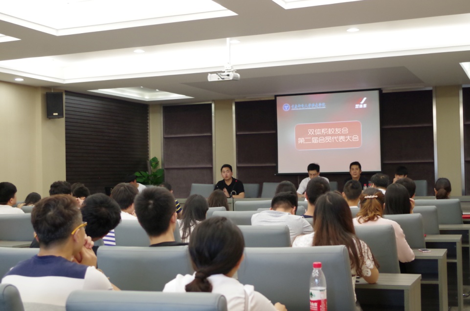 双体系校友会自2015年6月成立至今,已过了两个年头,期间在各期校友的大力支持与配合下,双体校友会取得了辉煌成绩,老学员分享、优质企业的推荐,对每一期双体学员的学习、就业起到了极大的推动作用;为进一步增强校友之间的联系与情感,推动校友会的有序发展,双体系校友会于2017年6月24日在学院举行了第二届会员代表大会暨理事大会。重庆邮电大学移通学院校友会副会长、秘书长、院长助理周伟老师,校友会副秘书长、理事、双体系主任陈仲华老师,双体系一至十一期的校友代表返回母校,出席了本次活动。