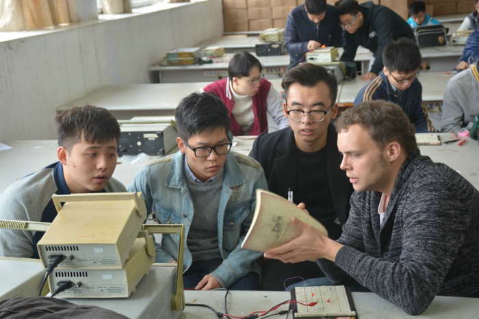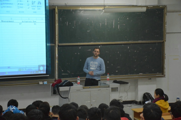 自10月31日至11月25日,在为期近一个月的时间里,中德学院2014级电气工程及其自动化(中外合作办学)的同学们迎来了本学期第二位专业课外教,一个熟悉的面孔—Carlo Vondano。外教Carlo在今年三月份的时候就曾来到中德学院,同样也是为2014电气工程及其自动化(中外合作办学)的同学们授课,讲授的是线路布局设计/电路课程,本次他讲授的课程为测量技术及执行器。对于再次见到外教Carlo,同学们很兴奋,至少他们之间省去了从陌生到熟悉的渐变过程,这也大大提升了专业课程的教学效果。