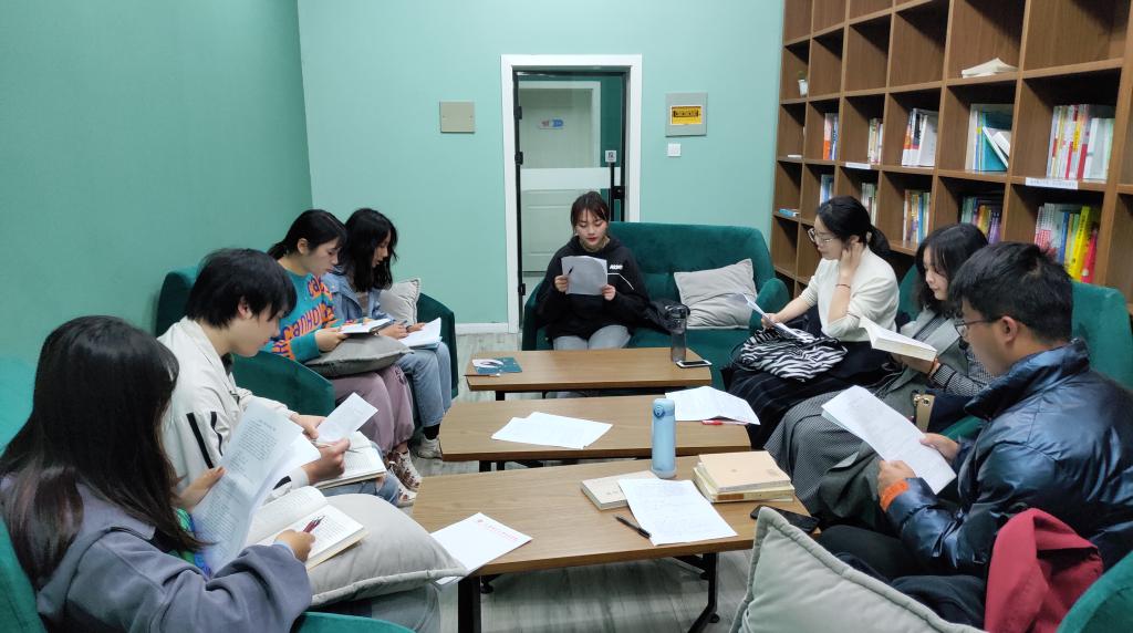 读书会作为《苏格拉底、孔子所开创的世界》课下延伸交流的方式,由通识教学部人文艺术教研室哲学课程团队的李娇、张娴雅、徐亚兰三位老师共同发起,从2020~2021学年第一学期开始,面向校内学生开放,教师全程帮助指导,营造共读氛围。要求学生轮流承担主讲人、主持人、记录人等角色,尝试各有担当地相互配合,同时,有意识地锻炼自己的归纳总结、分析判断、交流表达能力,提升写作品质。有来自电子信息工程、轨道交通信号与控制、数字媒体艺术、动画等不同专业、不同年级的学生持续参与。