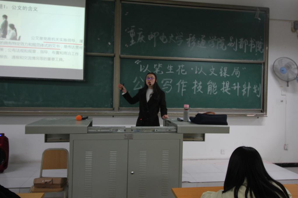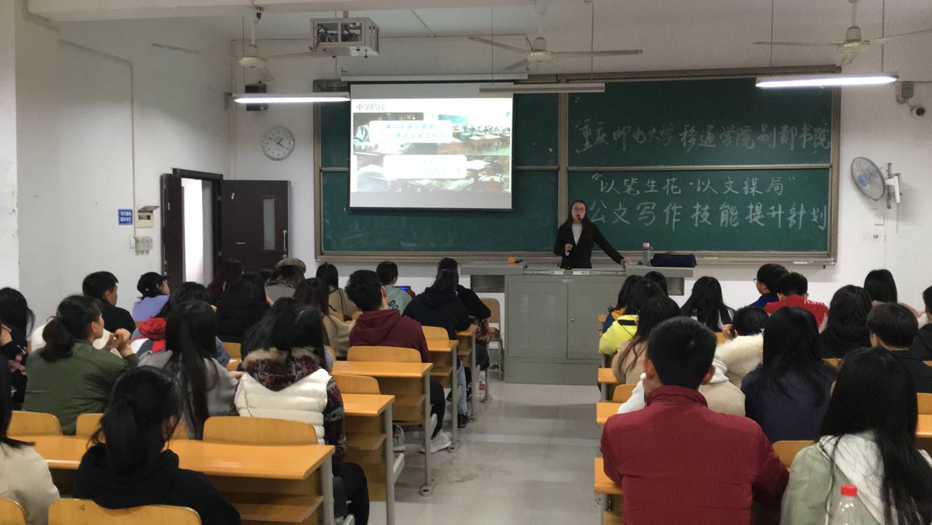 3月13日下午16:00,别都书院公文写作技能提升计划第一期于第一教学楼1210教室顺利拉开序幕,本次课程由钓鱼城研究院杜春梅老师担任主讲,来自别都书院及我校其他各院系、书院的100余名同学积极参与了此次学习。