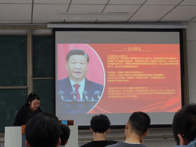 会上还邀请了2022级电器类8班井姝媛同学分享学习宣传贯彻党的二十大精神进校园。高举中国特色社会主义伟大旗帜,全面贯彻习近平新时代中国特色社会主义思想,弘扬伟大建党精神,自信自强、守正创新,勇毅前行,为全面建设社会主义现代化强国、全面推进中华民族伟大复兴而团结奋斗。此次分享目的在于培养学校学生的爱国爱党,爱人民的精神品质。学生坚定奋发向上的信念,不忘历史,展望未来。实施青年的使命担当为认真学好党的二十大的新思想,新论断,在学校内营造浓厚的学习宣传氛围,激发全体学生老师爱国,爱党,爱社会主义情怀。在听完井姝媛同学的宣讲后,陈秋权同学发表了自己的一点报告感想说道:“时间之河,川流不息,山河不忘,人心不忘,此刻我们与国同在,风华正茂。寸寸山河梦,昭昭赤子心。中华儿女,砥砺前行。我们是有远大理想抱负的青年!我们是有深厚家国情怀的青年!我们是有伟大创造力的青年!无论过去、现在还是未来,我们始终是实现中华民族伟大复兴的先锋力量!”