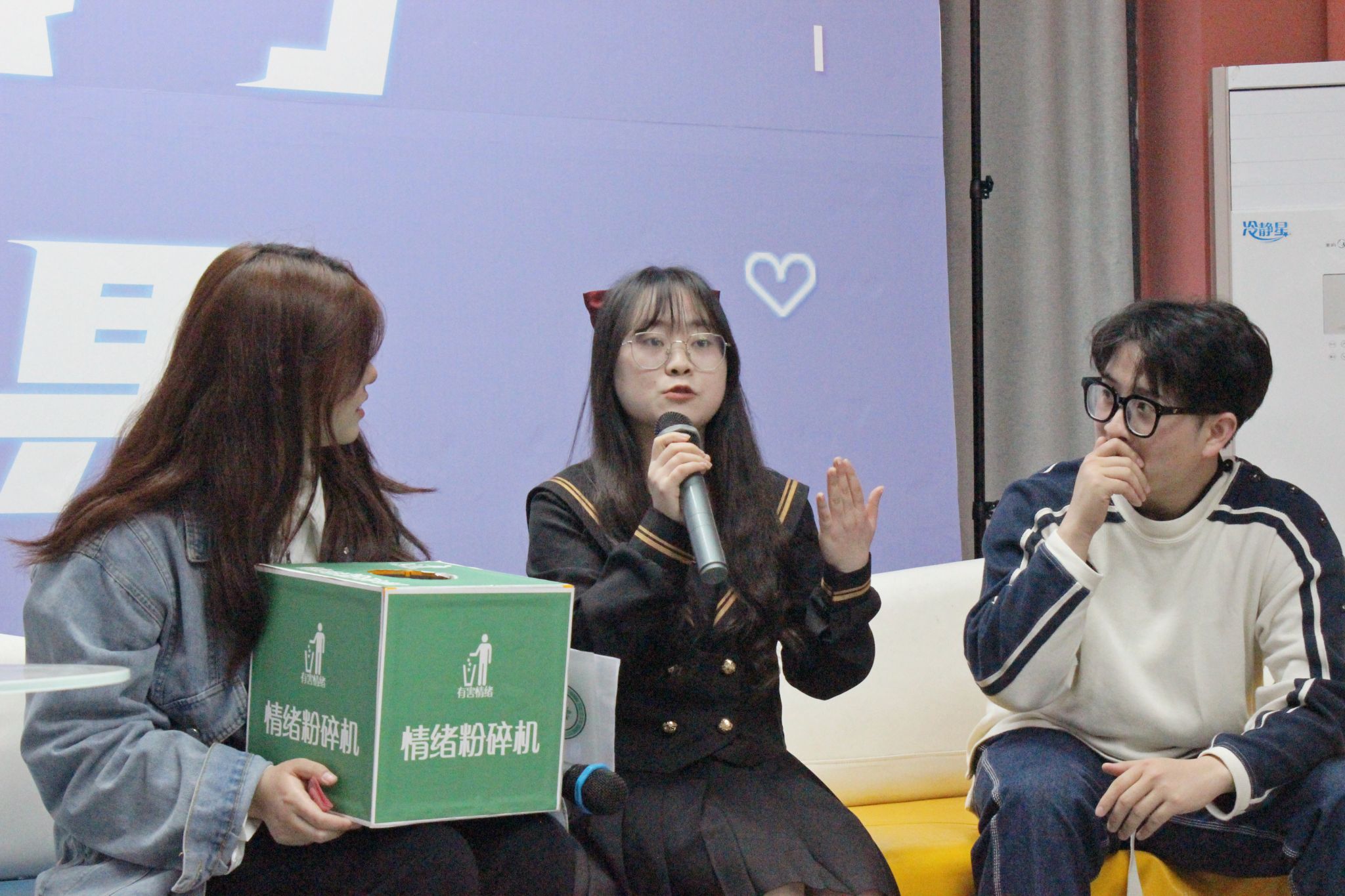 在这个充满压力与挑战的环境里,同学们可能常有许多困扰自己的问题,不知道如何去诉说和解决。在录制第二环节,嘉宾从前期在校园放置的“情绪粉碎机”里随机抽取问题进行解答。