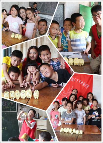 随着阳光照耀进教室,大部分孩子们都早早来到了我们身边,从他们一天比一天早到的情况来看,以及他们高涨的热情,我竟觉得这火辣的阳光开始变得温暖而美丽。这一天的开始,当然首先仍是课业辅导,让孩子懂得先苦后甜,理解努力与回报的道理。进而我们开始了工课,先让他们自由分组,并让我的小伙伴们帮他们布置课桌。然后教他们用彩纸和画笔折皮卡丘。