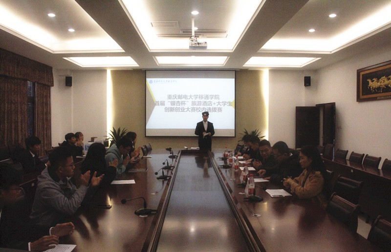 为推动成渝地域经济圈高校大学生就业创业工作,培养塑造大批旅游酒店业创新创业优秀人才,适应多行业融合的旅游新业态发展需要,促进成渝地区双域两地毕业生更加充分、更高质量的就业。特此我校就业创业指导与服务中心于2020年12月8日12:30在行政楼A107举办重庆邮电大学移通学院首届“银杏杯”旅游酒店+大学生创新创业大赛校内选拔赛。