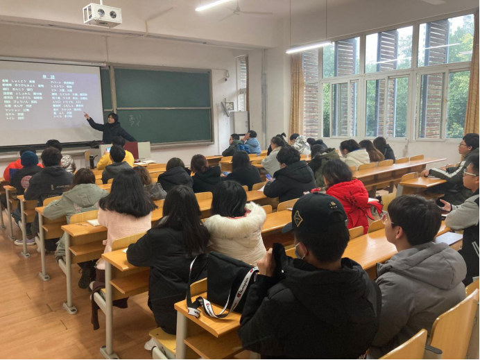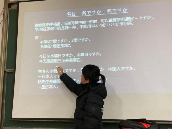 在开课的整个过程中,同学们都聚精会神,对于一门自己有所涉及或者是完全陌生的学科,大家都表现出强烈的兴趣与学习欲望。外国语言是一门既简单又深奥的知识,而语言的魅力则是能从其中感受到不同国家的文化,不同国家的思维方式。就日语而言,其中不乏有单词语法跟同学们在日常生活中的思维方式略有相同,比如日语中的“病院(びょういん)”这一词,翻译过来便是中文里的医院。“病院(びょういん)”这个单词的汉字和读法,让人一下就能联想到中文的医院,这便是日语的有趣之处。