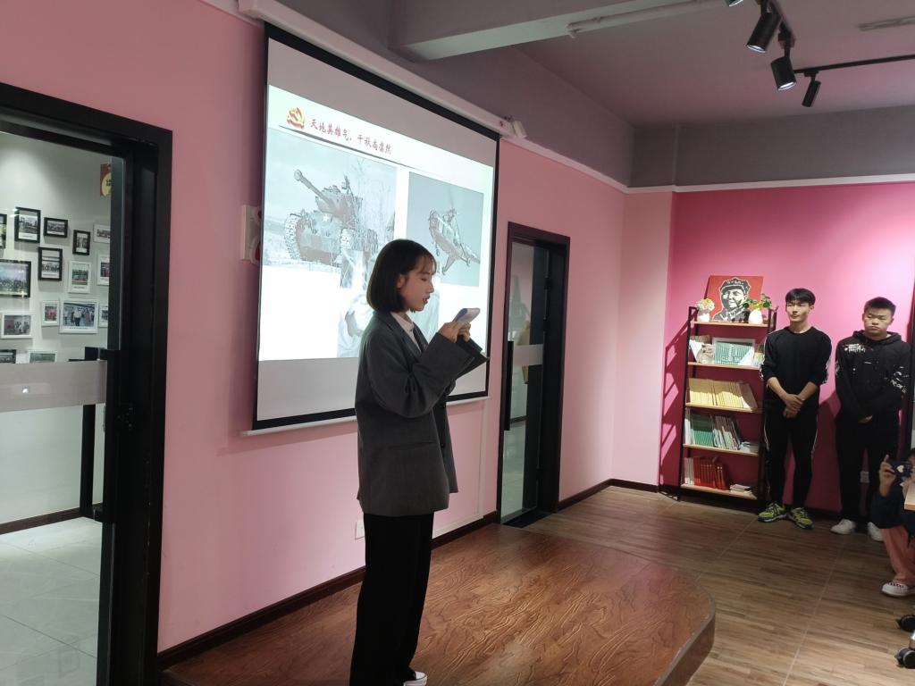 在爱莲书院的语言交流室里,一个个充满爱党爱国情怀的阳光青年,认真听着主持人齐亚然同学关于朝鲜战争中的著名战役——长津湖战役的讲述,一个又一个卧在冰天雪地里的人民志愿军战士。为了不让美国军团发现,他们只能严寒中保持一个姿势,面临死亡也丝毫没有畏惧。当《长津湖》电影片段播放,伍千里一句“我们把该打的仗都打了,下一代就不用打仗了”,让现场同学们眼眶湿润、为之动容。先辈已去,精神永存。吾辈当承袭先辈遗志,将报效祖国之心永刻骨髓,让五星红旗,闪耀在华夏大地。