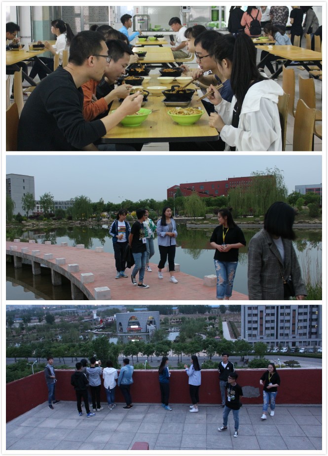 经过短暂的休息之后,热情的山西小伙伴们便带着我们去学校食堂品尝特有的山西美食。用餐完毕,又带领我们参观了信院大气磅礴的建筑风光。大家一路上有说有笑,讲述着信院不一样的魅力与情怀。