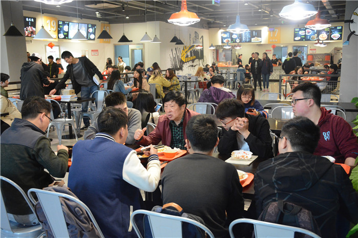 一张长桌,短短距离,拉近的不仅仅是老师与同学们身体的距离,更是心的距离。共餐时,汪纪锋教授时不时向同学们分析自己关于教学上的心得,还为同学们的日常生活答疑解惑,将换位思考的想法灵活运用,使同学们受益匪浅。“老师,我最近挺迷茫,不知道该不该坚持下去”一位同学这样问道。“考研是个独木桥,你们要把控自己的内心,不要松懈,不要跟风,要有足够的信念去面对可能发生的一切”。