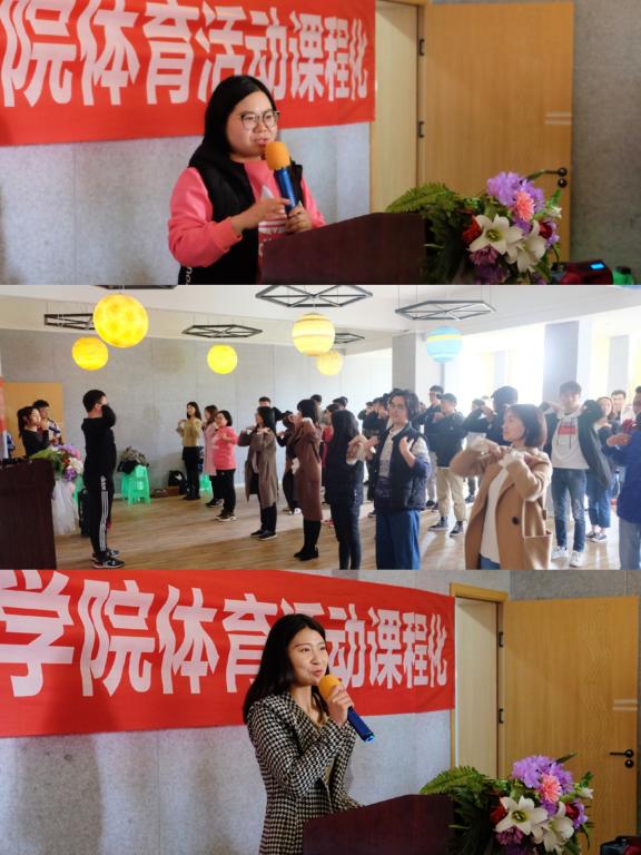 为让同学们更好地了解书院与院系此次联动探索体育活动课程化的初衷,领会体育活动课程化对广大学生的切实帮助,汇江书院与大数据与软件学院全体教师、学生骨干于3月19日中午12:00相聚汇江书院功能室举办动员大会。在动员会现场,大数据与软件学院副院长毛敏老师和汇江书院综合办公室主任程晓娇老师就“双院制联动融合”、“项目课程化与特色课表建设”等方向向同学们进行了动员与宣讲。从内涵与学生需求出发,强调落实运动全民化、常态化、项目化,做到人人参与、主动参与。动员会后,由我校健身协会的邱玉环等3位同学带领现场师生进行互动,虽然大多数学生是第一次接触健康热身操,但是在健身协会同学的指导下,大家的动作越来越规范。更重要的是在轻松活泼的氛围中,同学们体会到运动带来的快乐,这为后续课表建设奠定了良好的基础。现场师生用实际行动宣誓:运动从自身做起,从今天做起。