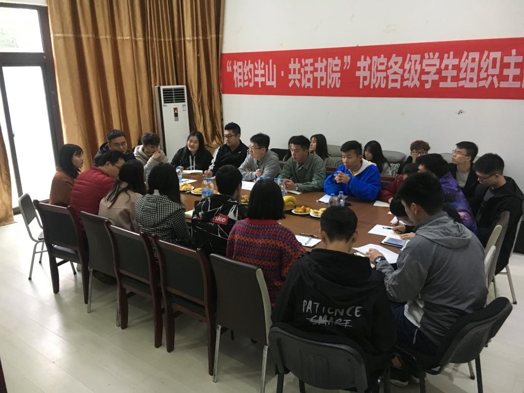 2019年3月23日,书院部及书院各级学生组织代表师生共同来到半山书院,开展书院各级学生组织主题团建活动,畅谈书院建设。