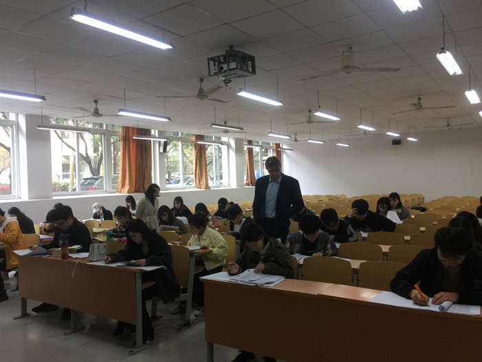 作为地道的德国人,外教Lars Rech让同学们体会到了纯正地道的德语专业课,与外教零距离接触,面对面交流,让同学们获得了真实的口语历练,增强了学好德语、学好专业的信心。在第一堂课上,一开腔说话,外教那纯正的德语便抓住了同学们的耳朵。外教和同学们进行简单的自我介绍并回答同学们的问题。在与同学们的互动交流过程中,外教流利地道的德语、诙谐幽默的肢体语言、与众不同的教学风格,都深深吸引了每一位同学。在外教的带领下,一开始还比较拘谨的同学们,很快就变得活泼、欢快起来。在慢慢熟悉过后,外教开始带领同学们进入到控制学的专业知识学习,纵然专业知识枯燥乏味,在外教生动幽默的教学方法下,每一位同学都认真聆听,生怕漏掉一个知识点。