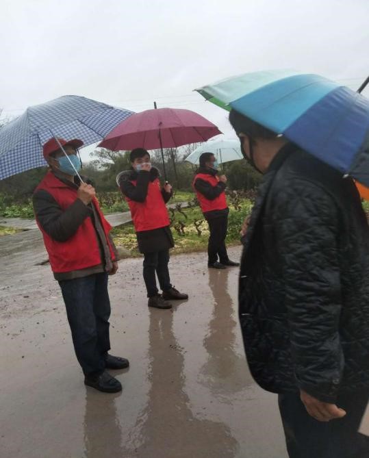 志愿工作开始后,村民的意识大大提高,我们得到他们对这次防疫工作的理解与支持。记得第一天封场,我早上六点半就出门了,外面下着大雨、吹着风,初春的早晨却如寒冬一样的冷。当我来到指定路口,看到社区干部已经打着雨伞守在那里,他们的鞋子都被雨水浸湿,裤子也被打湿到了膝盖处,冷得瑟瑟发抖也默默的坚守(我后来才知道那天的温度是3-7度)。不一会,一个年轻人开着一辆三轮车来到路口停了下来,从车上下来一个中年妇女准备上街买东西,而她却没有戴口罩,我们告诉她要戴口罩而且今天不赶场,街上所有的店铺和门面都不营业,去了也买不了东西,但是她不相信,说要去街上看看,一边说着一边就往街上走去,这时,我和几个社区工作人员就大步走到她前面给她讲这次疫情的严重性以及注意事项,她就停下了脚步,沉默了一会,说道:“你们也不容易,这么大的雨守在这里也是为大家好,我就不上街了。”然后转身回到车上离开回家了。