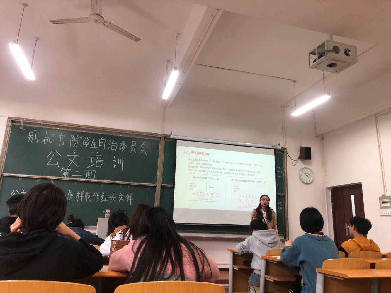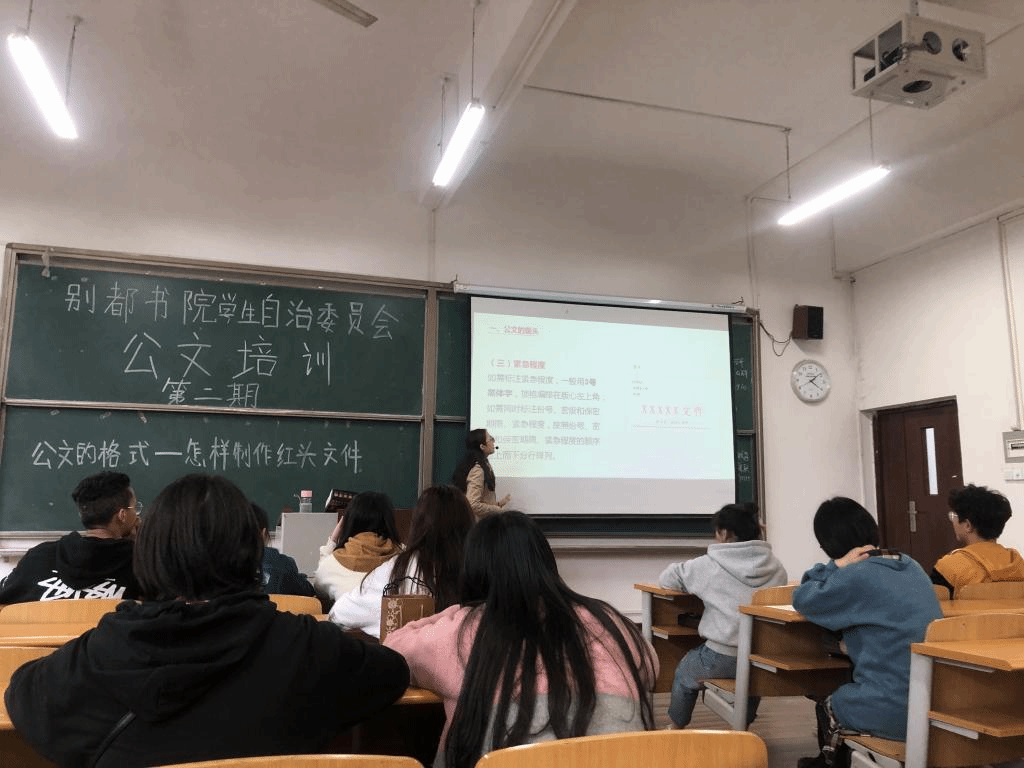 为进一步提升同学们在日常公文写作中遣词造句、谋篇布局的思维能力,帮助书院学子不断提升综合素质和职业技能,掌握现代企业管理的基本知识和能力。4月3日下午16:00,别都书院公文写作技能提升计划第二期于第七教学楼7201教室如期开展,来自钓鱼城研究院的杜春梅老师作为主讲人,为大家讲解了关于公文写作中“格式”的相关标准及其内容。