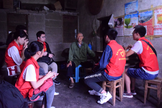 在走访中同学们了解到,苟家村的朱爷爷是一名年已花甲,却身体依旧硬朗的人,但是老伴王氏神经衰弱,有轻度认知障碍,儿子因胯部两侧做过手术不能做体力活,只能靠做简单手工活赚些生活费,一家人的收入来源主要靠扶贫资金,像朱爷爷这样的家庭在苟家村有十几户,同学们听到这个消息后纷纷表示担忧,并主动帮朱爷爷简单检查身体、收拾屋子,检查是否存在危险用电等情况,“虽然我们今天做的并不能帮到他们太多,但是能帮着做一点就做一点吧,他们太不容易了,除了这次“三下乡”,后面我们也会经常过来,了解一下他们脱贫的情况,帮他们做一些力所能及的事,讲一些脱贫的故事等等,希望能给他们在思想上带来一些触动。”一名队员如是说。