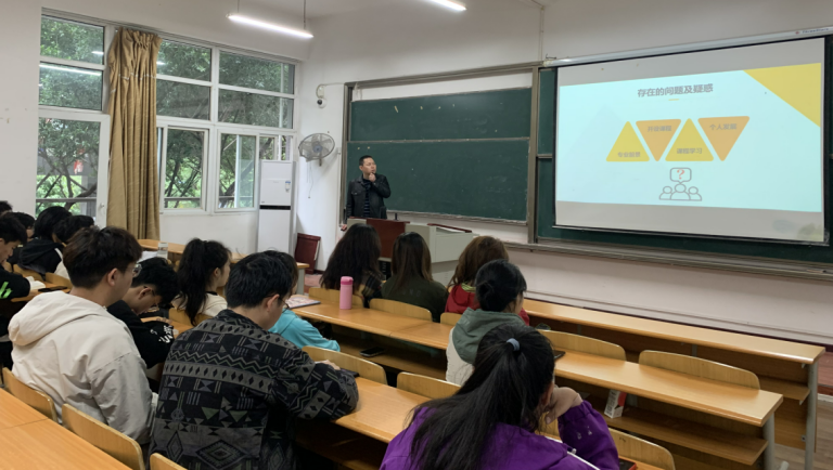 李老师结合学生所学专业,就本学期所开设的课程给学生进行了学习引导,为学生提出了个人成长规划建议:建议大家要认识自我、认识学校;明确个人定位和个人目标;从完满、通识、商科和专业全方位发力。同时,李老师还对本学期的时间进行了阶段式的讲解,建议学生充分利用学校提供的平台和优质资源,及早定下目标和自己的人生规划,选择好适合自己发展的方向并朝之努力,努力成就自己并实现梦想。