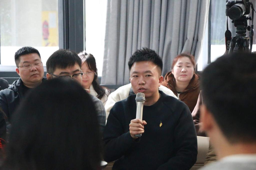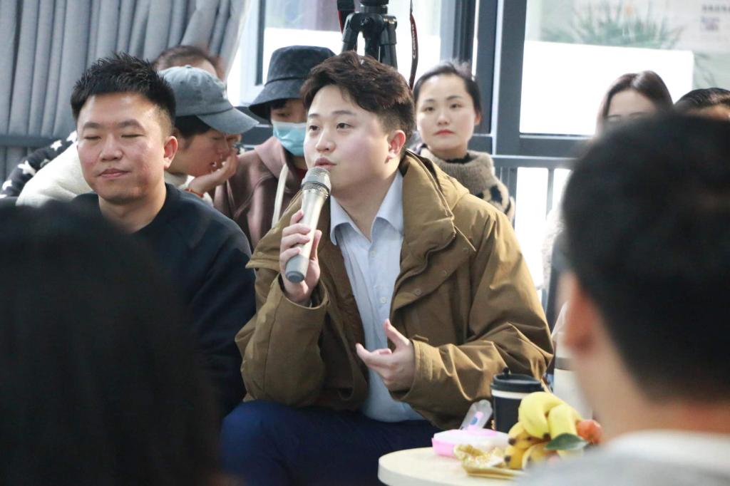 会议中,彭董对各位企业家的到来表示热烈的欢迎和真诚的感谢,高度赞扬珍爱黄董、小二郎姜总以及优秀校友高杰的创业和管理经历,同时他也简要回顾了自己开创地板新品类的创业经历,对黄董开创国内湿巾新品类和创业者们的企业家精神大加赞赏,并勉励在场的同学们要珍惜学校时光,充分利用和享受学校四位一体双院制的培养过程。在与同学们的互动环节中,2020级英语八班陆尹珊同学对于英语专业毕业的就业方向非常迷茫,大胆的向彭董请教。彭董就此再一次阐述了自己的成长观和就业观。他回忆了自己早年一个细节,自己去外交部考试,只有他是唯一一个不是英语专业的学生。“考试中出现了大量的专业银行和金融机构的名称,以及国际政治词汇,因为我读了大量的广、杂的书籍,所以都顺利准确翻译出来并获得考试第一名。这看似侥幸,实际上得益于我的平时的积累。所以我们英语专业的同学,一定不能去和211、985大学的英语专业学生比英语,我们要和他们比英语外的信息产业知识、商科知识,比全面的完满的能力。同时我们要和非英语专业的能力同样很强的学生比英语专业水平。这样,我们就找到了自己的优势所在。我们英语不差、能力比较强,有了这个综合优势,就可以做到不是我们找工作,是工作找我们。也如黄总所讲,不是我们辛苦找钱,是钱追着我们滚滚而来。”针对学生提出的创业相关问题,彭董认为创业的初心一定不能是为了“挣钱”,而是要创造社会价值。如果一门心思想着赚钱,反倒可能走入另外一个迷途。当做了有益于社会的事情,社会给予反馈和奖励,这无不是一份利润。所以在学校,我们学校、老师和同学们一起努力,不断创造价值,日积月累,点滴完满,定会有星辰远景。