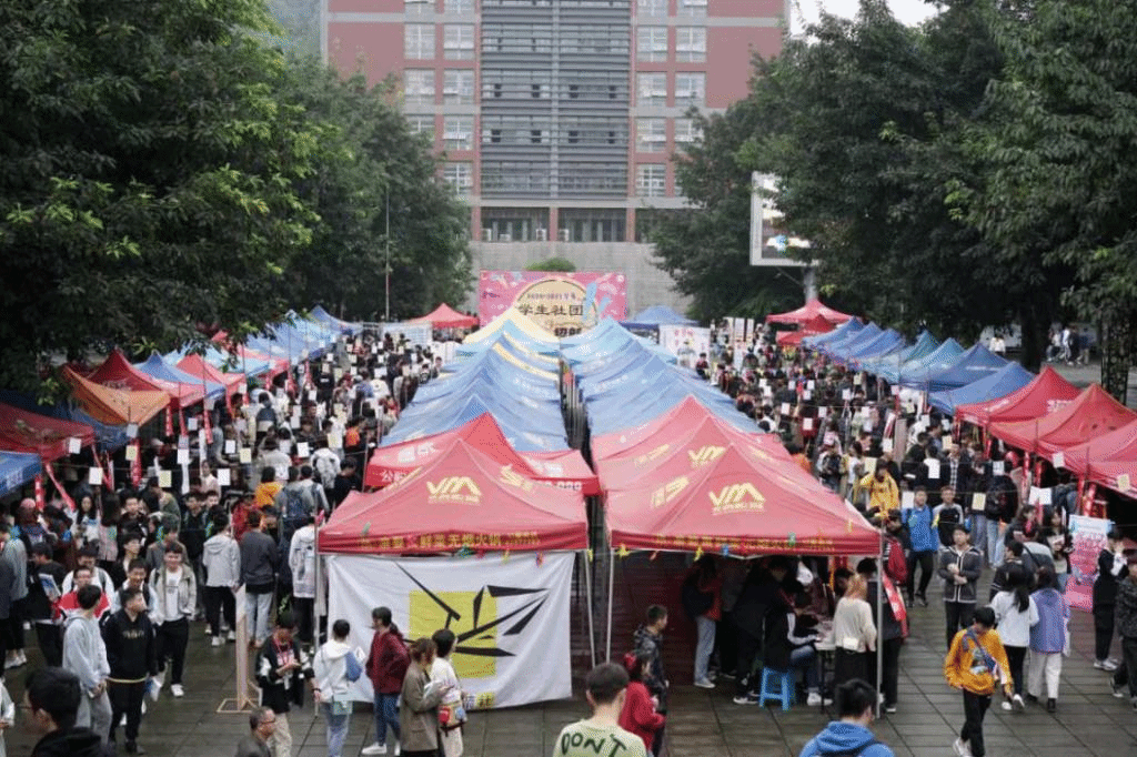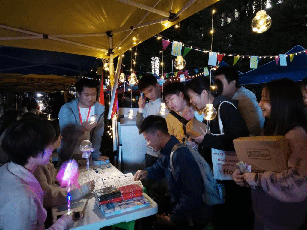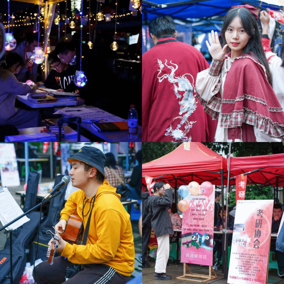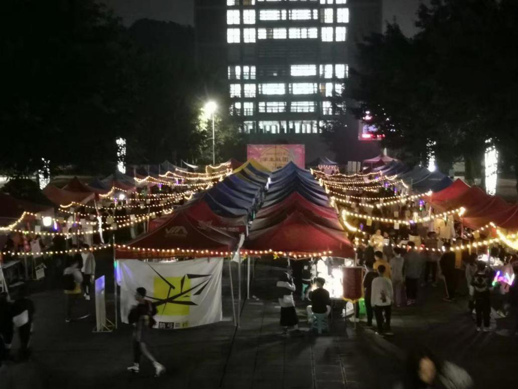 人间至味是清欢,招新浓时在十月。有这样一群人汇聚在一起,挥洒青春,爱我所爱,共同编织一段美好的大学回忆。而社团招新,就是这段美好的开始。10月13日-14日我校77个学生社团招新在黄桷树广场正式拉开帷幕。夜幕的降临笼罩灯火通明,社团招新首次推入“夜晚展示场”,不同的社团文化在这里撞了个激情满怀,整个招新现场洋溢着青春的蓬勃气息和浓厚的文化艺术氛围。
