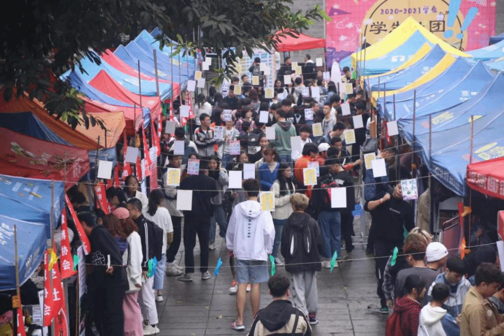 “暗闻歌吹声,知是长安路”,这是2020级学生社团招新活动现场真实的写照。77个学生社团招新现场,人流攒动,热闹非凡。同学们三两成群、不约而同地来到了黄桷树广场,眼神中透露出好奇与期待,在这里寻找着属于自己的一方兴趣天地,期望彰显属于他们的社团新时代。各个社团更是努力地展现出他们独有的社团文化魅力,他们满怀激情与耐心,秉持细致与专业,集魅力、特色、创新于一体。在此,社团与萌新们的第一束萤光开始汇聚。