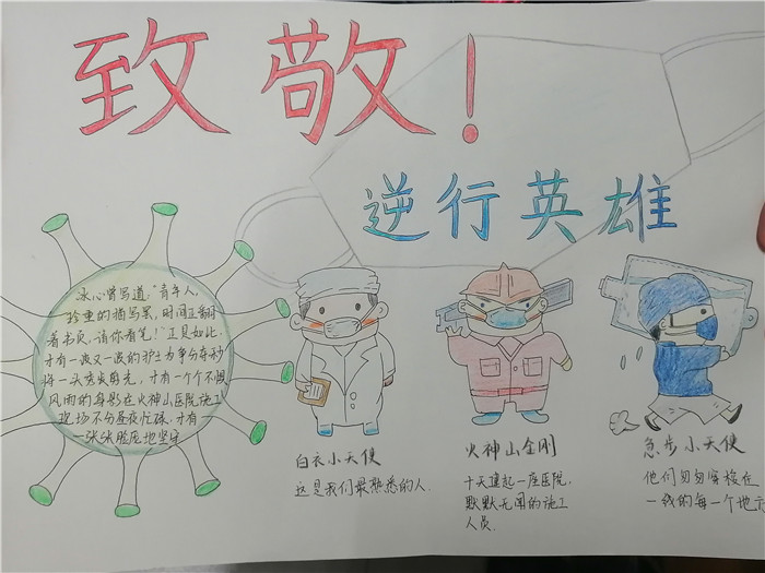旌旗漫卷遍营房,“将士”回头已褪装。退伍老兵逐渐佝偻的身躯,抗疫英雄坚定不移的步伐,都在小报上展现,简单的色彩变化透露的是对英雄满满的敬畏之情。而小报的设计初心也是学子们心中敬佩与爱戴的最直观展现。