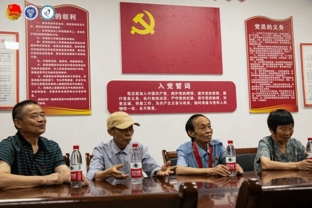 忆峥嵘岁月。四位带着党徽的老党员入座社区活动室,岁月在他们脸上刻下了痕迹,但在与他们的交谈中仍然能感受到他们对于党的赤忱。湛爷爷在回忆当铁道兵时谈到:“不管退伍多少年,心里面对党的忠诚永不变,入党的誓言永不变,决心为党的事业奋斗终生。”过去的时代全靠人民的双手,从每一位老党员的故事中,先锋队的队员们了解了建党一百年进程中的艰难困苦,新时代青年站在老一辈艰苦奋斗的肩膀上砥砺奋进是他们的殷切期望。