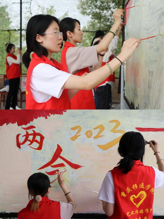 为传达学习2023年全国两会重要讲话精神,深入学习贯彻习近平强军思想,2023年3月15日下午,艺术传媒学院青年志愿者协会的志愿者们整装待发,迎着午后的阳光一起前往武警中队开展“强国强军,弘扬两会精神”主题板绘志愿服务活动!