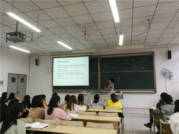 10月18日下午,外语系全体老师落座2502教室,充满期待地观摩了由本期新入职的杨沁霏老师讲授的大学英语1课程。本堂课的授课内容选自全新版大学英语教材Unit1,主要通过多样化的复习手段来帮助学生回顾和巩固本单元所学要点。