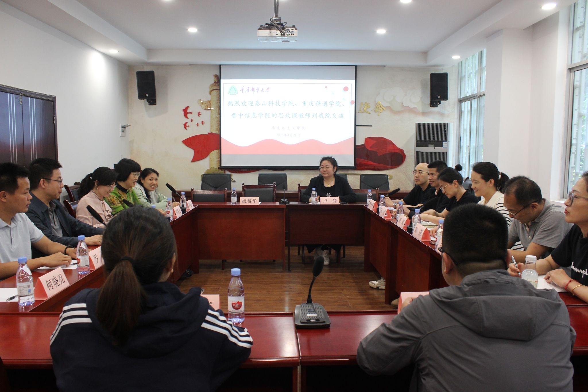 为进一步学习借鉴兄弟高校马克思主义学院在学院建设、课程建设、师资队伍建设、实践教学等方面的先进经验和成功做法,4月21日下午,我校马克思主义学院院长邓燕、山西晋中信息学院思想政治理论教学研究部杨凯部长、山东泰山科技学院马克思主义学院解嵘院长率各自学校的业务骨干一行赴重庆邮电大学进行调研交流。与重庆邮电大学马克思主义学院副书记兼副院长谈娅,副院长郭海成、全国模范教师刘秀伦教授及思政课教师代表等在重庆邮电大学马克思主义学院会议室座谈,座谈会由重庆邮电大学马克思主义学院副院长谈娅主持。