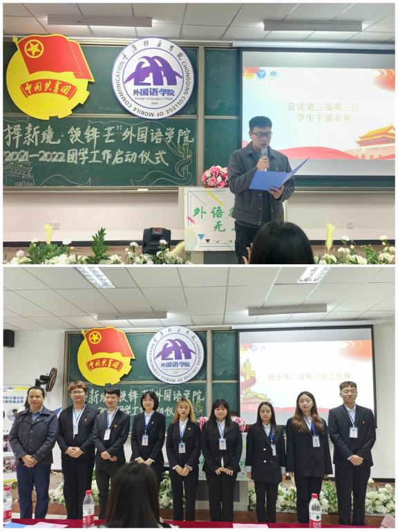 外国语学院第三届第三任主席团的工作证由外国语学院副院长祝玮老师授予,主席团成员依次为其分管部门干部授予工作证。这一张工作证不仅仅代表着一个三届三任学生组织干部头衔,更是代表着一份责任与担当。授予工作证也意味着各位干部正式加入外国语学院三届三任学生组织,这是一份认可,更是一份激励!希望每一位走上新岗位的干部,可以更好地播洒自己的热情和才学,矢志奋斗,勇往直前。