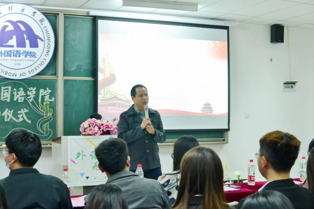 本次启动仪式最后由外国语学院副院长祝玮老师指导讲话。祝老师提到如今外国语学院蓬勃发展,回首往事时不禁感慨万千。他提到,干部干事之间的关系并非上下级而是同事,希望大家能加强沟通交流。他还就“双减”政策下英语专业学生如何利用我校完满教育将自己培养成多方位人才提出建议。