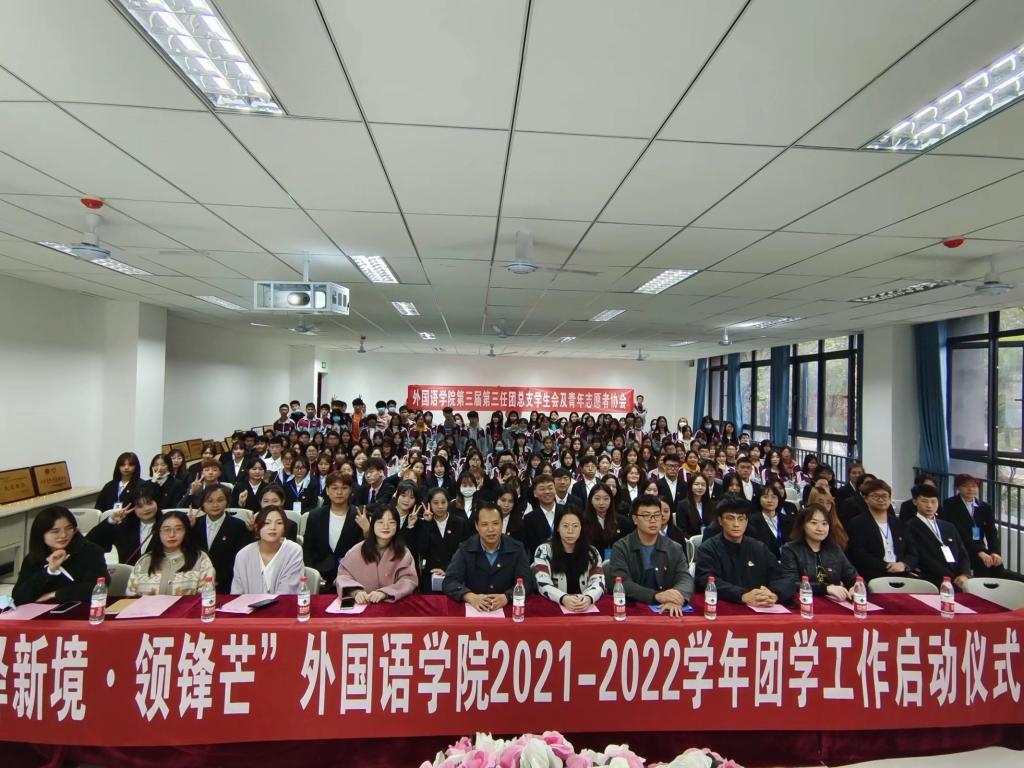 为确保外国语学院各项学生工作高效高质开展,充分发挥学院学生组织在校园文化建设中的重要作用,外国语学院于10月27日16时在第九教学楼107教室开展外国语学院2021-2022学年团学工作启动仪式。本次启动仪式的嘉宾有外国语学院副院长祝玮老师,校团委杨婕老师,以及外国语学院学工办全体辅导员老师。