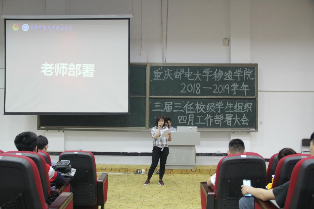 经历了三月的忙碌,四月带着新的挑战向我们徐徐走来。为了更好地迎接新的“挑战”和相关工作的展开,重庆邮电大学移通学院校级学生组织四月工作部署大会于4月8日下午6:00在3203教室顺利举行。围绕本月主题“挑战”,各个组织进行了相关的工作部署。