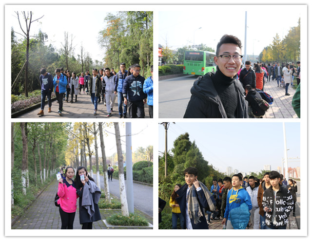 冬日暖阳,你我同行! 世上值得开心的事,莫过于得到老天在天气上的眷顾,一周的阴雨连绵换来了今天难得的冬日暖阳。艺术传媒学院的莘莘学子正打包好行李,准备出去看看外面的风景。为丰富学生在校学习生活,培养团队协作精神,展现当代大学生的气质,艺术传媒学院于2016年11月26日举行了“弘扬长征精神,磨炼坚强意志”为主题的徒步拉练活动。小伙伴们上午九点在学校大门口集合,迎着冬日暖阳朝着目的地进发。