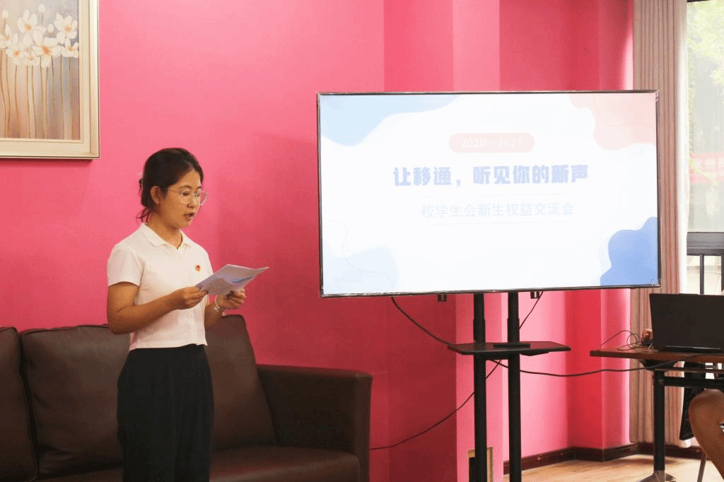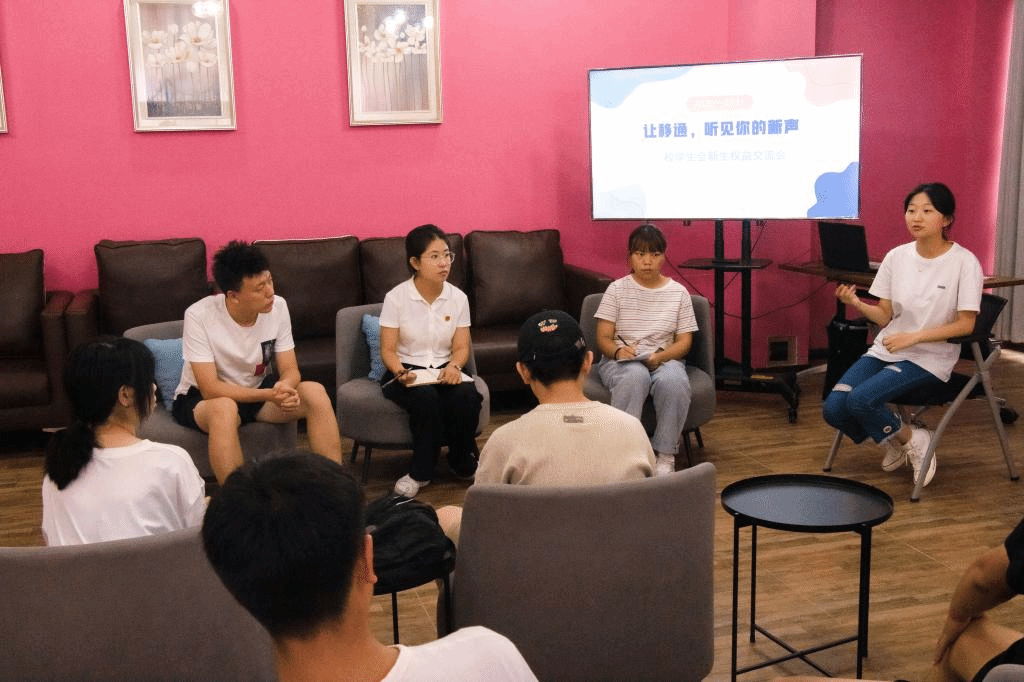 为了提升扩大权益服务的深度与广度,更好的服务同学,维护同学的合法权益。2021年9月15日下午16时,校学生会权益部在爱莲书院艺术交流室举行了“让移通,听见你的新声”2021级新生权益交流会。交流会上,校学生会权益部围绕“全心全意为同学服务”这一宗旨分享了大学生活中的维权经验。同时,工作人员也对同学们提出的问题做出记录,并跟进反馈。