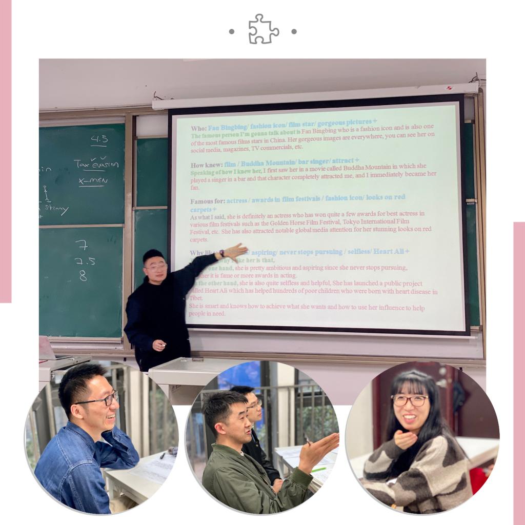 有趣而生动的一堂雅思口语课迎来尾声,全体教师积极参与探讨并发言,其中校督导卢镜囡、雅思优秀教师陈西楠、王琥老师、饶前程老师等几位老师进行了精彩的点评。卢镜囡老师结合自身的教学经验以及学校学生的学情对杨老师的本次授课进行了详细地分析,充分肯定了杨老师在板书设计、语言表述、细节设计等教学方面的良好表现,同时也针对杨老师课件字体内容排版方面提出建议并给出了修正和调整意见。最后,侯宇晶副院长总结和补充了各位老师的点评,对杨老师在本次公开课中的表现进行了一分为二地评价,充分肯定了其优点和长处,同时,也分析了其中存在的不足,并给出了宝贵的意见和建议,同时鼓励青年教师要加强相互学习,努力提高自身教学实践能力和业务能力。