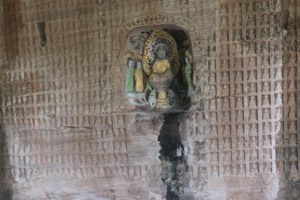 龙多山地处潼南县东北檬子乡与合川区龙凤镇、赤水镇交界处,距离合川城区约60公里。由于恰逢清明节放假,大量当地居民需要回乡祭祖,路途不断出现拥堵状况,导致在前往龙多山的时间延长,最终调研团队在多名成员晕车状况下,历经艰辛到达龙多山脚下。龙多山,原名紫徵山,钟灵毓秀,山势挺拔峻秀,峰峦起伏,逶迤飞腾,宛若龙蟠,故名龙多山。俗话说“一山不容二虎”,然而合川境内的龙多山却是佛教、道教共存,而且两教和睦相处,十分融洽,则堪天下少见。龙多山最精华最珍贵的是千余年以来所留下的古石刻艺术。最早的作品为东晋,多数为唐宋,明清亦有遗存。