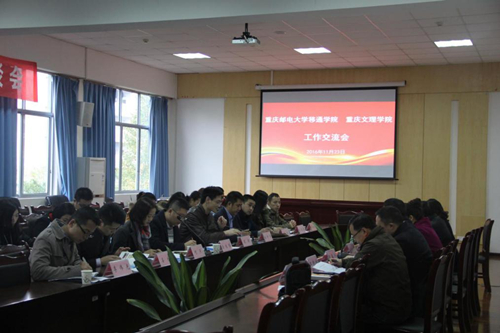 在此之后,两院的座谈交流会在重庆文理学院就业中心的会议室正式召开。重庆文理学院党委副书记刘灿国、合作发展部副部长谢华琳、合作发展部部长助理陈盛兴、校友会副会长曾祥禄、创新创业指导中心主任李莉、就业指导中心主任周道林出席本次交流会。