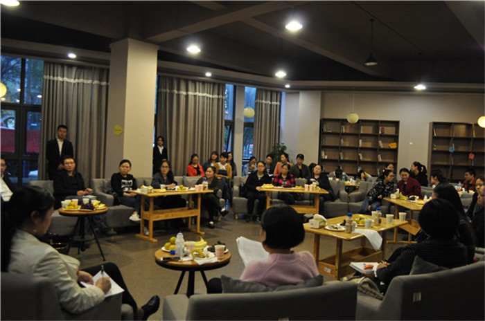 下午4:00,研讨会正式开始,主持人、市场营销教研室范保珠老师首先就到场的嘉宾及所在企业进行了介绍:合优网创办于2010年,目前系合川区龙头互联网企业,旗下门户、论坛、垂直频道、移动平台丰富,拥有用户近50万;而医考园则专注于医学考试资讯及培训,目前跻身全国前十。同时,两家企业围绕互联网+,不断深耕线下市场,分别创立企业孵化基地——合优互联网产业园、梦飞翔创业产业园,吸纳中小微企业近三百家入驻。随后,范保珠老师就研讨会的目的、校企合作的价值等方面进行了阐述。