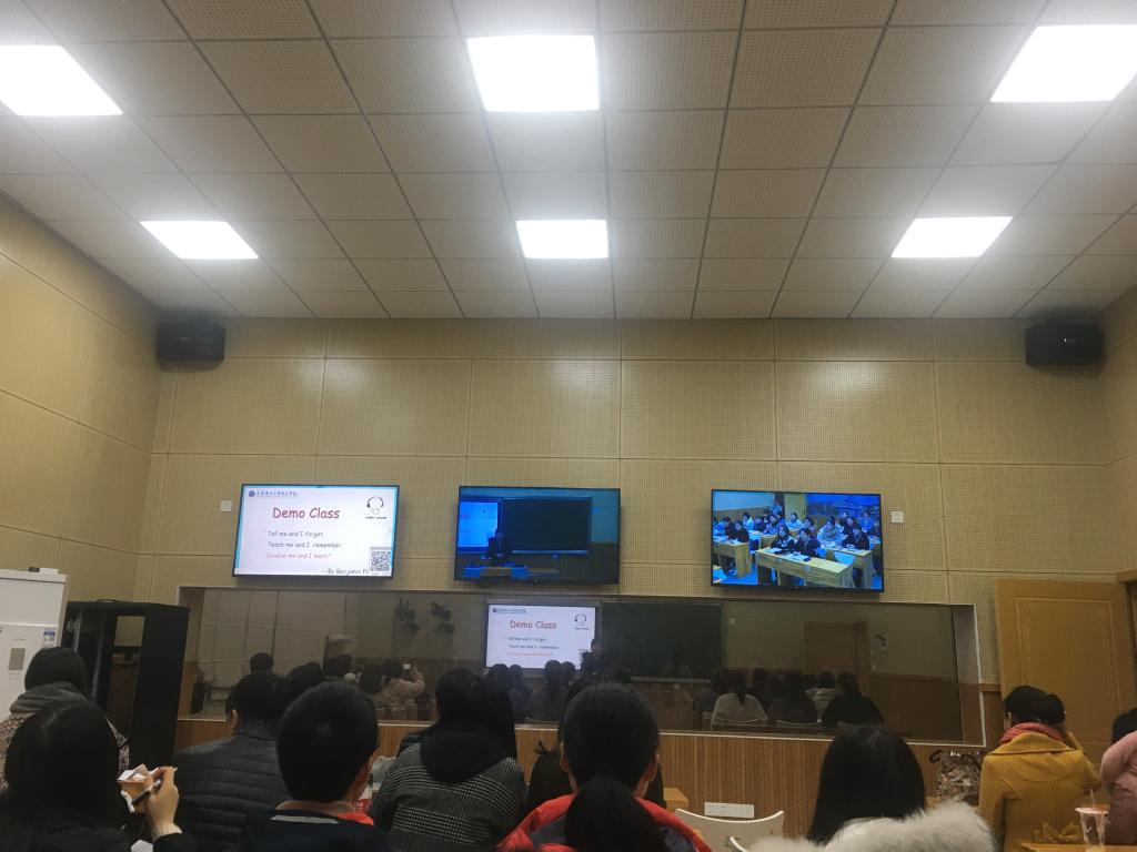 示范课后,外国语言文学系副主任罗琳老师鼓励全体教师参与示范课交流,并就如何融入信息化教学手段打造“金课”这一话题进行讨论。多位教师积极发言,交流自己的想法,其中吴艳老师指出在教学过程中应该注意充分运用灵活的教学方法进行启发式教学,注重学生语言输入和输出相结合。新进教师谢光娇提出应该向刘老师学习,将“雨课堂”有效融入到听力教学活动中,采用倒计时形式帮助学生有效把握时间,随机抽取学生回答问题可制造紧迫感,提高学生课堂的专注力。外教Clive表示非常喜欢今天刘老师选择的授课话题,对学生的思维训练富有一定的启发意义。朱蓓老师认为在上课过程中亲和力十分重要,而且要针对学生回答问题的情况给予评价,鼓励学生多开口说英语,让学生不自觉地习得语言知识,并愿意表达自己的观点。