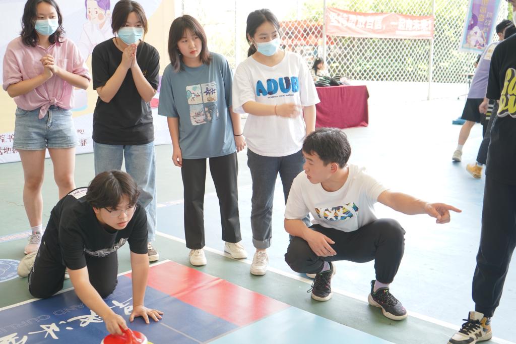 冰壶的碰撞与滑行,使比赛结果反转又反转。“分数一样,得量距离。”裁判拿来卷尺,两只队伍在赛道上探头研究,最终以平局的结果再战一次。比赛将体育文化带入校园生活中,鼓励学子体验参与,激发参与竞技体育意识,通过合作锻炼学子之间的团队协作能力,在身体力行中感受竞技的魅力。