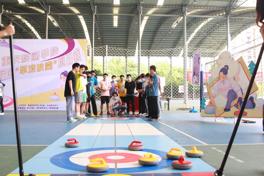 为将“更快、更高、更强、更团结”的奥林匹克精神融入校园生活,激发学子竞技体育热情,4月27日下午两点,由北山书院、营地教育中心、体育活动部共同承办历时4小时的重庆移通学院首届“旱地冰壶”挑战赛在北校区风雨篮球场热烈角逐。本次“旱地冰壶”挑战赛既保留冰壶运动的重要特质,又打破其场地限制,以冰壶连接大众与冬奥文化,讲述学子通过书院平台展示风采风貌的故事,是高校与时代共同孕育的硕果,活动紧紧围绕“团队力量”“奥运精神”等一系列关键词,引导学生学习体育文化,感受竞技体育精神,激发团队协作能力与坚韧力。