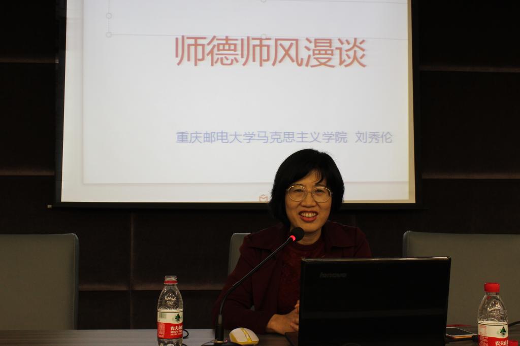 为深入贯彻落实中共中央、国务院《关于全面深化新时代教师队伍建设改革的意见》及习近平总书记3.18讲话精神,加强我校思政部师德师风建设,引导思政课教师以德立身、以德立学、以德施教,争当学生“引路人”,争做有理想信念、有道德情操、有扎实学识、有仁爱之心的新时代好老师,培养高素质的思政课教师队伍,10月9日下午4点,思政教学部在行政楼601室举行了“新时代厚植思政课教师师德师风专题讲座”培训会。此次培训会由思政教学部主任邓燕主持,全国模范教师、重庆市“最美教师”、重庆邮电大学马克思主义学院刘秀伦教授主讲,思政教学部全体教师参与培训学习。