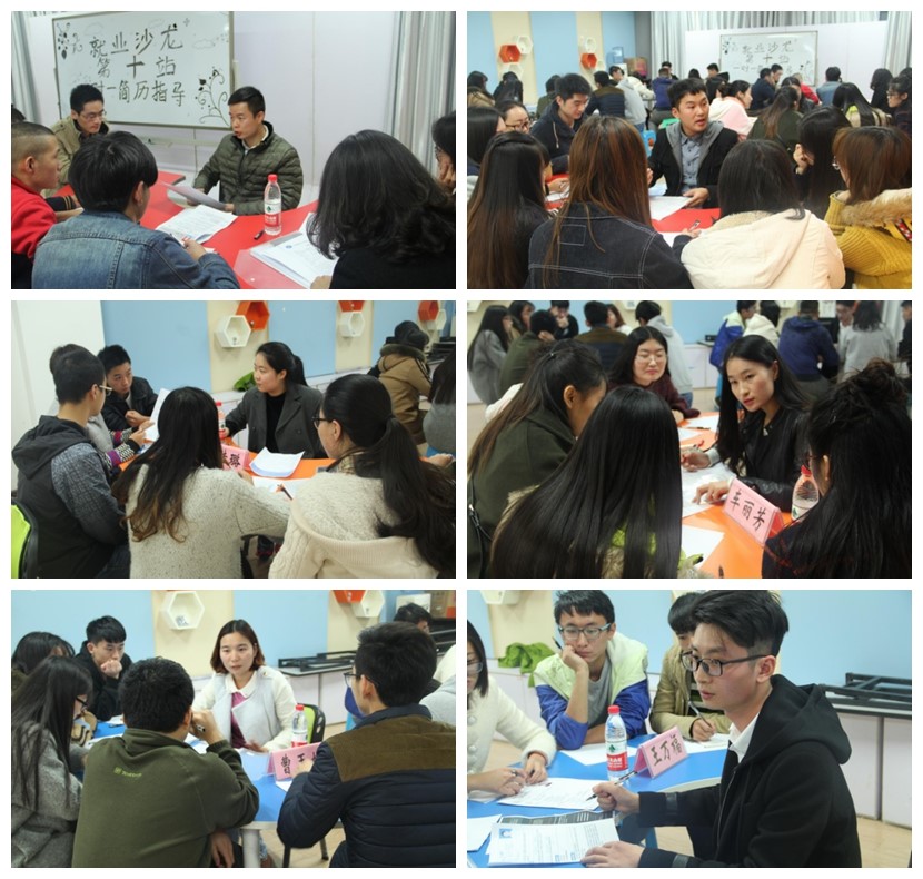 时光,似慢又快。四年大学生活转瞬即逝,怎样才能在即将步入的职场中脱颖而出呢?毫无疑问简历就是求职成功的开路先锋,是宣传和包装最有效的工具。为了让我校学生更好地用简历叩启求职的大门,2016年11月10日19:00,就业沙龙·第十站《一对一简历指导》在五教二楼创业服务大厅举行。本次就业沙龙,有幸邀请到我校就业教研小组全体教师为同学们指点迷津,分别是霍佳璐老师、车丽芳老师、向玉淼老师、曹玉姣老师、杜涵老师、王万福老师,他们每位都具有丰富的指导学生修改简历的经验。