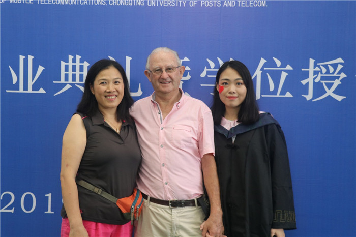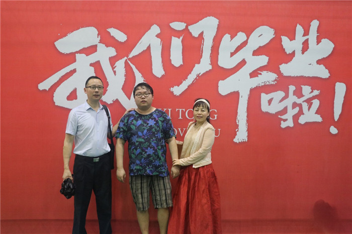 艺术传媒学院广播电视编导专业学生刘昕育一家很早就抵达了学校,一家人一起在校园里走走看看,感受了一下他过去四年的生活,他的父亲刘庆华说:“我们对移通学院的印象很好,学校环境相当不错,我们很喜欢移通学院。今天的这次毕业典礼对我们一家人都很重要,这是孩子步向另一个阶段的象征。在这里特别要感谢移通学院对孩子的栽培,他的成长和进步我们都看在眼里,心里很高兴。我也希望孩子以后能越走越远,努力实现自己的梦想,加油!”