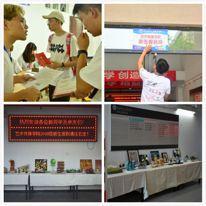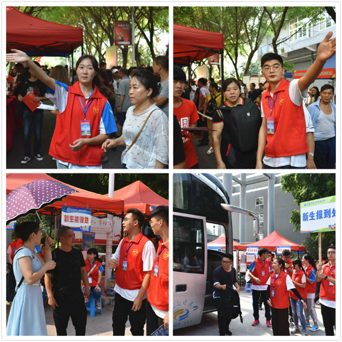 各院系新生接待教室内,冷风机、饮用水、院系部门介绍、院系所得荣誉、往届学生的作品展示,还有迎新志愿者们热情的接待、真诚的微笑,无不在拉近了新生、家长与学校的距离,增强新生对学校的归属感。
