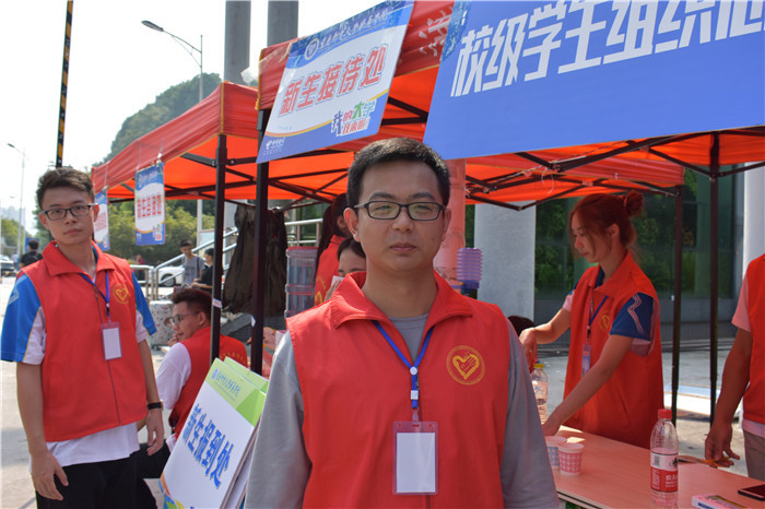 智能工程学院的曾昱锋是校门迎新的志愿者之一,他说:“去年我也是什么都不懂的小萌新,是身着红马甲的学长学姐细心热情地帮助我、为我指路、拿行李,所以今年我也要穿上这代表‘奉献、热情’的红马甲,这既是一种感恩,也是一种奉献,更是一种传承。”