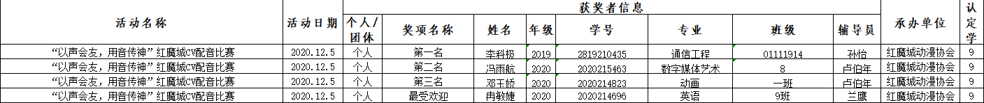 重庆邮电大学移通学院红魔城动漫协会牵头主办的CV配音比赛于11月11日在我校黄桷树广场正式开始报名,活动邀请全校师生共同参与,一同在声音的海洋里,尽情徜徉。经过趣味的比拼在12月5日决出优胜参赛者。