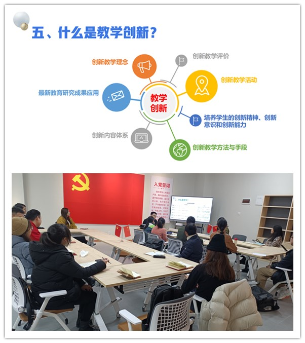 11月25日下午,中德应用技术学院在南湖书院党团活动室举行了2021年新进教师系列培训第二期——教学创新分享活动。本次活动由张亮、曹雪姣老师进行分享,欧标德语教研室、机械双语教学教研室全体教师出席。