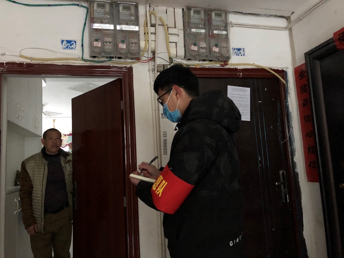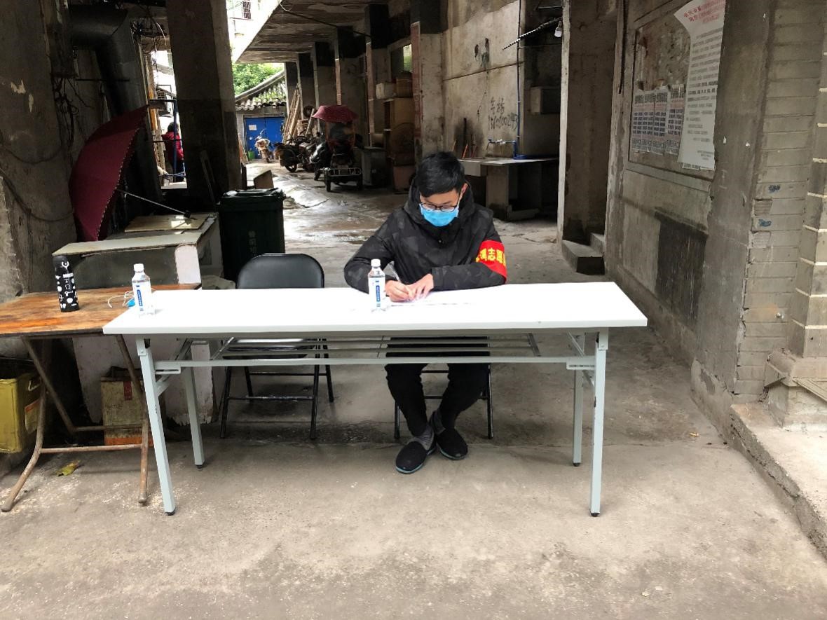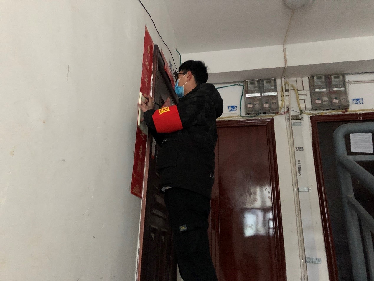在疫情期间,林森同学服从上级组织的安排调动,辅助居委会完成线上宣传,提供便民服务;挨家挨户排查登记;在社区主要出入口引导居民出入登记和外来人员劝返工作;社区疫情防控知识宣传以及发放居民出入证等相关工作。