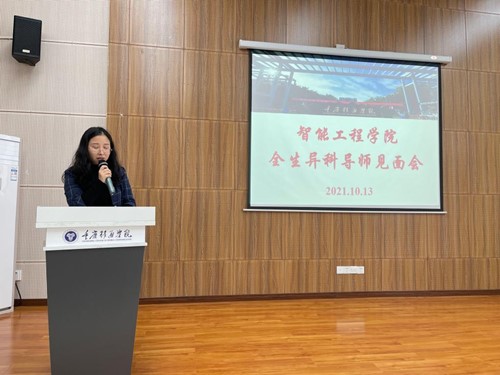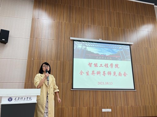 为充分发挥学校“四位一体+双院制”培养特色,深入推进“以学生发展为中心”的教育理念,做好学生思想引领,关注学生成长状态,加强师生互动,营造师生紧密联系的学习生活共同体氛围,重庆移通学院针对2021级新生在各学院推行全生异科导师制。为积极响应学校新制度,10月13日14点,智能工程学院在天渠报告厅召开异科导师见面会,会议由李洁副院长主持,党晓圆院长、李巧副院长、学院异科导师、2021级辅导员及各学生代表参加本次会议。